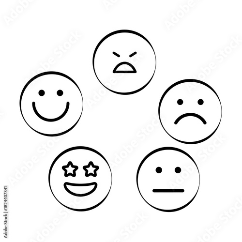 © Smartcast, Fototapeta premium Black and White Emoji Vector Set: Faces and Emotions