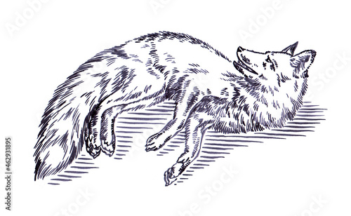 © Turaev, Fototapeta premium black and white engrave ink draw fox illustration