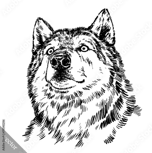 © Turaev, Fototapeta premium black and white engrave isolated wolf