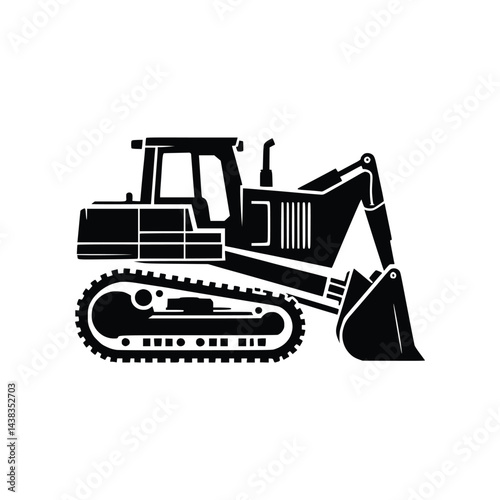 Naklejka premium Black and White Excavator Silhouette, Heavy Machinery, Construction Equipment...