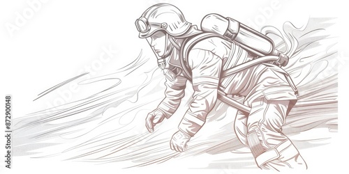 © jambulart, Fototapeta premium Black and White Firefighter in Action