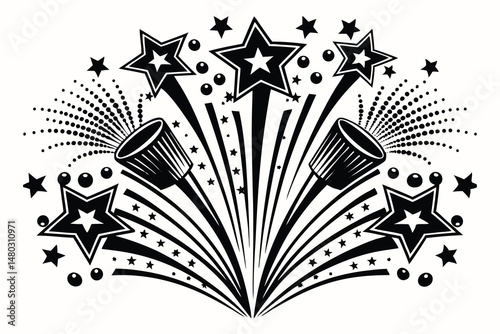 Obraz premium Black and white fireworks design, perfect for celebratory themes.
