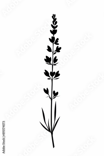 © Art Resources, Fototapeta premium Black and white flat vector art of a lavender sprig, svg style, isolated on white background, simple vector art design