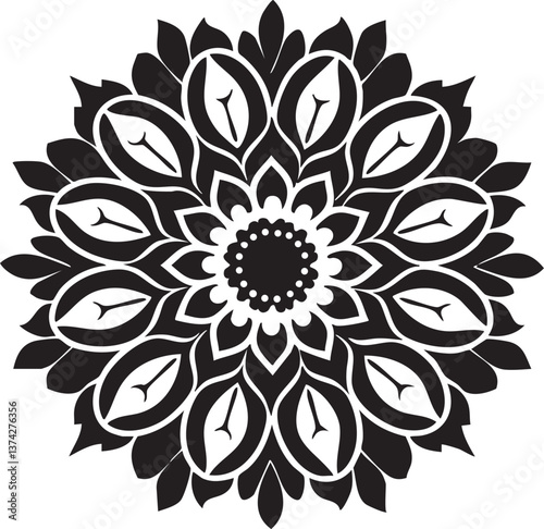 © Mark, Fototapeta premium Black and white floral mandala design for decorative and meditative purposes.