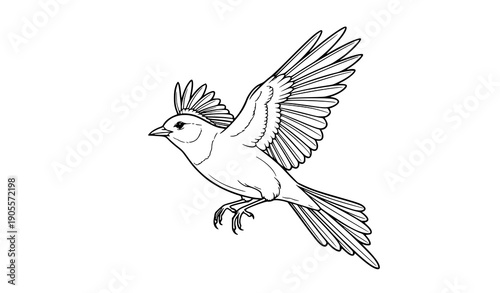 Fototapeta premium Black and white flying bird line art vector illustration with detailed wings...
