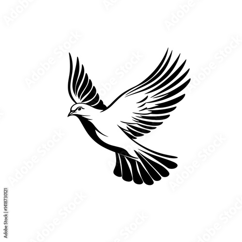 © Neyrostocker, Fototapeta premium Black and white flying bird silhouette with detailed wings