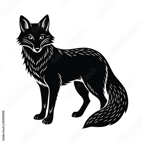 © soniya, Obraz premium Black and White Fox Illustration Silhouette on white background