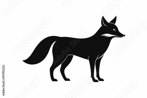 Obraz premium black and white fox silhouette, fox vector illustration, fox silhouette,...