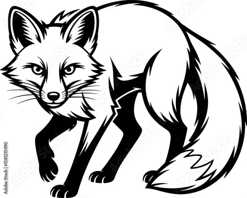 © Sahera, Fototapeta premium Black and White Fox Stalking Graphic Illustration red fox