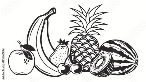 Naklejka premium Black and White Fruit Illustration Set for Decorative Design