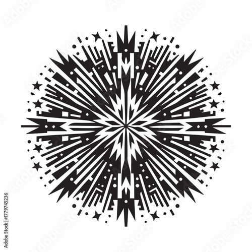 Obraz premium Black and White Geometric Fireworks Pattern Vector