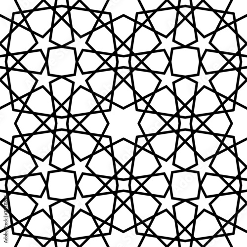 © noppanun, Naklejka premium Black and white geometric seamless pattern background..