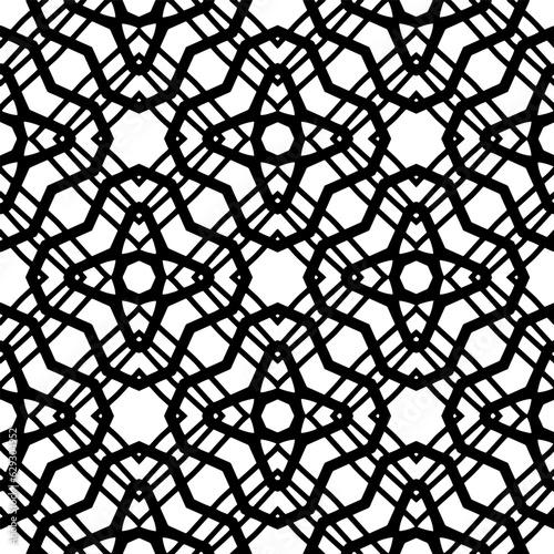 Naklejka premium Black and white geometric seamless pattern with abstact shapes. Repeat pattern for fashion, textile design, on wall paper, wrapping paper, fabrics and home decor.