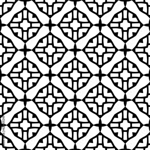 Naklejka premium Black and white geometric seamless pattern with abstact shapes. Repeat pattern for fashion, textile design, on wall paper, wrapping paper, fabrics and home decor.