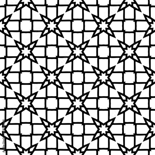 © t2k4, Naklejka premium Black and white geometric seamless pattern with abstact shapes. Repeat pattern for fashion, textile design, on wall paper, wrapping paper, fabrics and home decor.