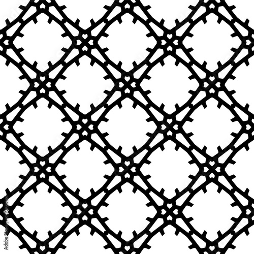 © t2k4, Naklejka premium Black and white geometric seamless pattern with abstact shapes. Repeat pattern for fashion, textile design, on wall paper, wrapping paper, fabrics and home decor.