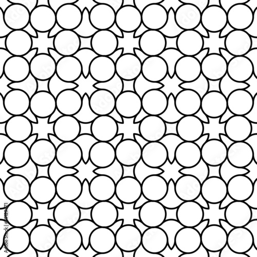 © noppanun, Naklejka premium Black and white geometric seamless pattern with line and circle,