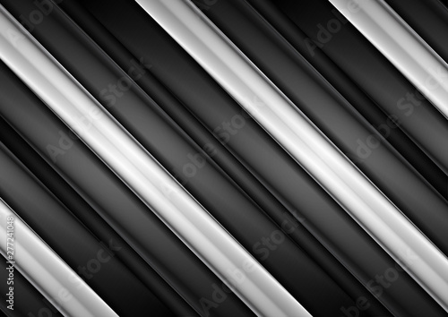Obraz premium Black and white glossy stripes abstract tech background