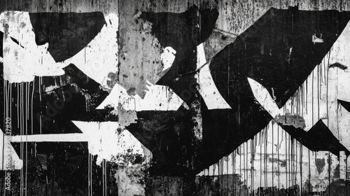 Fototapeta premium Black and white graffiti wall, monochromatic street art