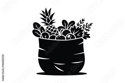 Fototapeta premium Black and white grocery bag filled with fruits and vegetables