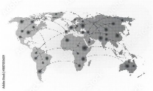© Muaz, Obraz premium Black and white halftone world map on with grid pattern
