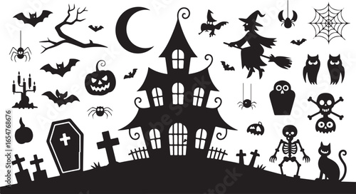Fototapeta premium Black and white halloween vector silhouette set