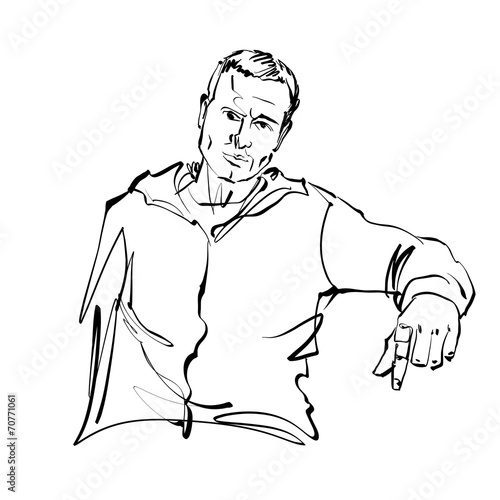 © Sylverarts, Fototapeta premium Black and white hand drawn illustration of a relaxed sitting man