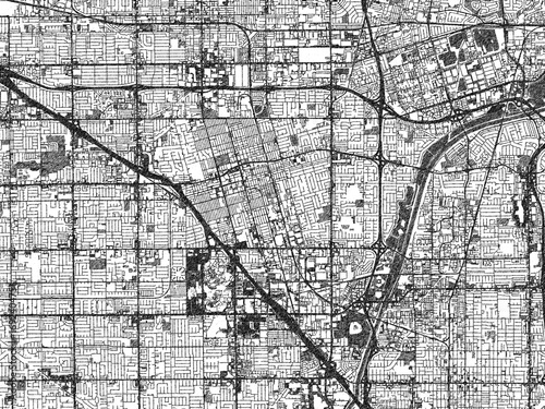 © W&S Stock, Fototapeta premium Black and white hand-drawn map of Anaheim, California, designed as a decorative illustration.