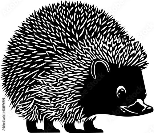 © Ahsan, Obraz premium Black and white hedgehog on an isolated white background | vector illustration of a hedgehog