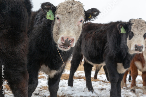 © Diane, Fototapeta premium Black and white Hereford looking at the camera