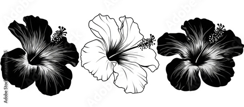 Fototapeta premium Black and white hibiscus flower illustration