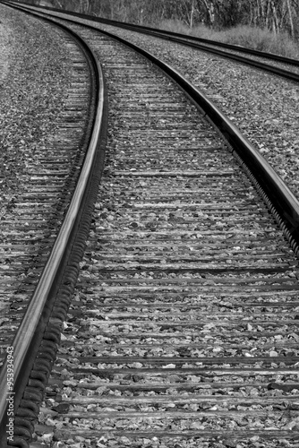 © Dennis Donohue, Fototapeta premium Black and White, highspeed rail line on curve