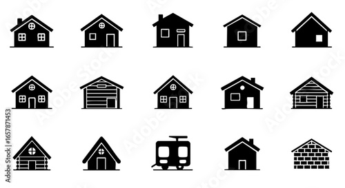 © Riaba, Fototapeta premium Black and white houses flat icon set vector isolated buildings