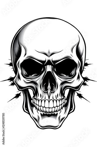 © eric, Fototapeta premium black and white human skull with ornaments , digital tattoo model