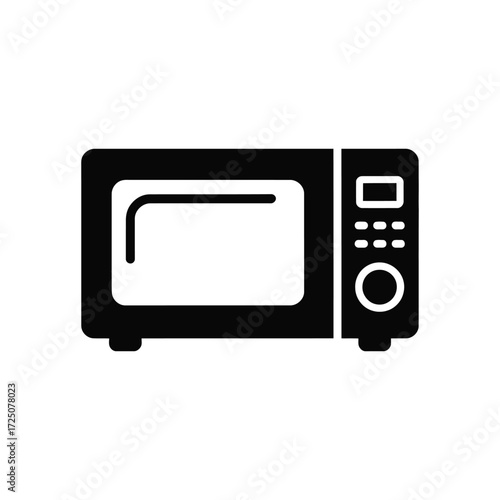 © Mahmud Creative, Fototapeta premium Black And White Icon Illustrating A Microwave Oven Appliance On A White Background
