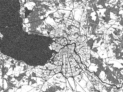 Naklejka premium Black and white illustrated map of Saint Petersburg, Russian Federation, with...