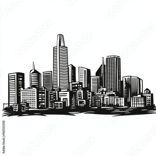© marfuah, Naklejka premium Black and white illustration of a city skyline.