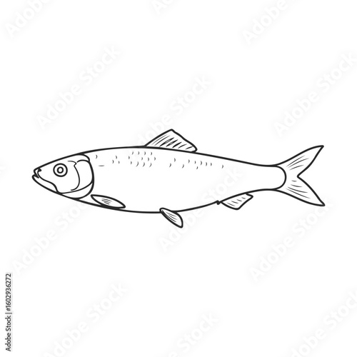 Fototapeta premium Black and white illustration of a fish with detailed line art design – stock...