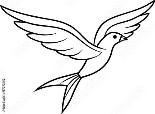 © Designfly, Obraz premium Black and White Illustration of a Flying Bird