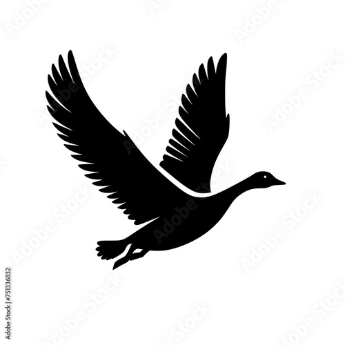 © Rifqi Chandra, Naklejka premium Black and white illustration of a goose. Professional vector logo of a flying duck.