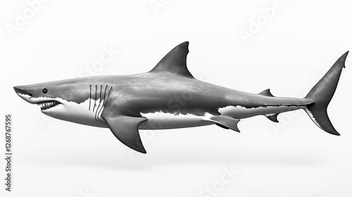 Fototapeta premium black and white illustration of a great white shark. The shark is shown in a...