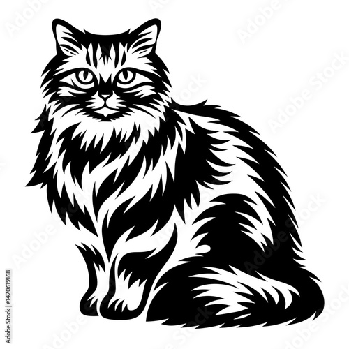 © PixelArtBox, Obraz premium Black and white illustration of a long haired cat sitting down