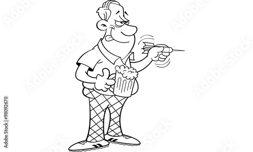 Fototapeta premium Black and white illustration of a man throwing a dart.