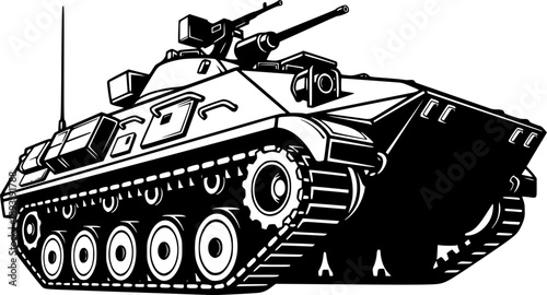 Fototapeta premium Black and White Illustration of a Military Vehicle for Armed For