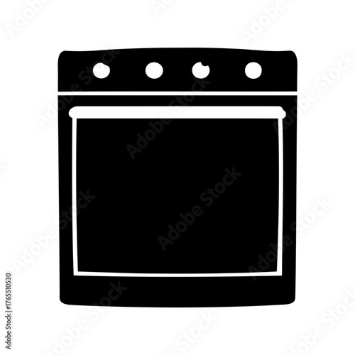 © Siam, Obraz premium Black and white illustration of a modern style kitchen oven appliance