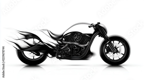 © PixelQraze, Obraz premium Black and White Illustration of a Motorcycle in Motion
