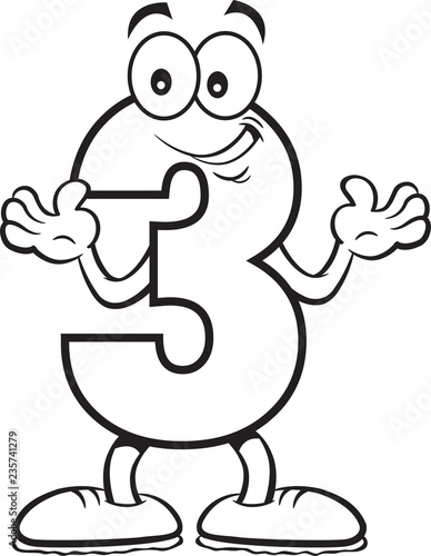 Obraz premium Black and white illustration of a number three with it's hands up.