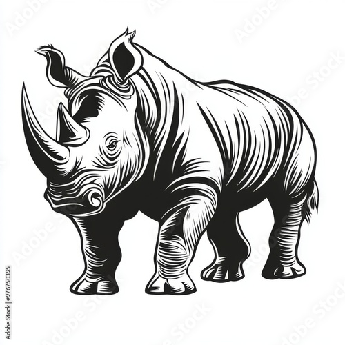 © marfuah, Obraz premium Black and white illustration of a rhinoceros.