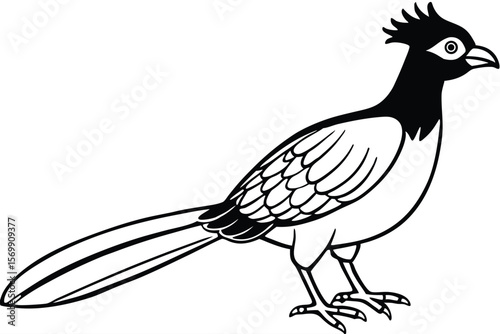 Fototapeta premium Black and White Illustration of a Roadrunner with Crest, Tail, and Detailed Feathers