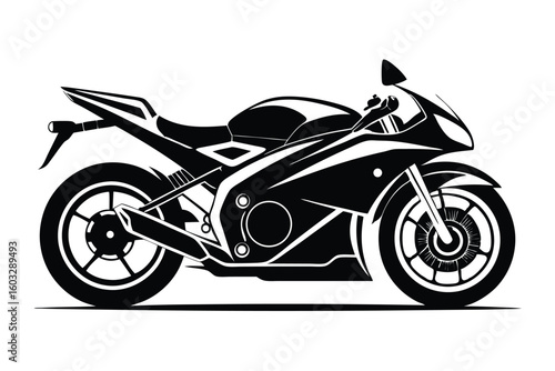 Fototapeta premium Black and White Illustration of a Sleek, Modern Sport Motorcycle with Streamlined Design